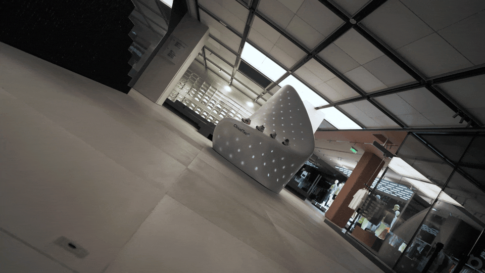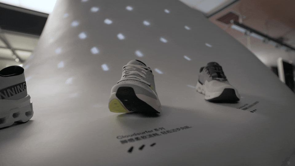 The animation celebrates On’s iconic CloudTec technology. The building blocks – the individual white shapes – are inspired by the forms of On’s sneaker design, while the cumulative animation, which floats, pulses, and ripples around the sculpture, evokes the motion of walking and running.